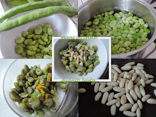 Io questo lunedì porto in tavola un'insalata di fave con pinoli, zenzero e timo, particolare e molto aromatica.